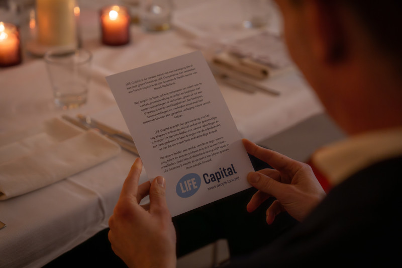Met de lancering van LIFE Capital krijgt Noord-Nederland een krachtig samenwerkingsplatform dat bedrijven, talent en kennisinstellingen samenbrengt in de snelgroeiende Life Sciences & Health-sector. Tijdens een speciaal lanceringsdiner op dinsdag 25 november bij het LIFE Cooperative lid Polyvation op Campus Groningen werd niet alleen het nieuwe merk onthuld, maar ook een ambitieus toekomstbeeld gepresenteerd. LIFE Capital, voorheen LIFE Academy, markeert de volgende fase van de LIFE Cooperative: van alleen scholing naar een breed gedragen samenwerkingsplatform voor menselijk kapitaal. “Met LIFE Capital zetten we de volgende stap in het versterken van onze sector,” zegt Melloney Dröge, bestuurslid van de LIFE Cooperative. “We brengen bedrijven, talent en kennis samen in één ecosysteem waar groei, leren en innovatie hand in hand gaan. We gaan voor een gezamenlijke aanpak van de human capital uitdagingen van onze sector. Zo bouwen we aan een regio waar je letterlijk en figuurlijk een leven lang vooruit kunt.” Van LIFE Academy naar LIFE Capital De overgang van LIFE Academy naar LIFE Capital is meer dan een naamswijziging. Het nieuwe merk weerspiegelt de groei van de organisatie en de ambitie om verder te kijken dan scholing alleen.LIFE Capital wordt de spin in het web van human capital in de Life Sciences & Health-sector: het verbindt talent, bedrijven en kennis, versnelt samenwerking en versterkt de positie van Noord-Nederland als broedplaats voor innovatie en talent. Een lang en gezond leven: dáár draait het immers om in Life Sciences & Health. Dankzij innovaties van bedrijven in deze sector worden ziektes sneller ontdekt, beter behandeld en soms zelfs voorkomen. Van baanbrekende therapieën tot het betaalbaar en toegankelijk houden van zorg: het bedrijfsleven vormt de motor achter vooruitgang die levens verandert. LIFE Capital wil dat fundament versterken door te investeren in mensen, kennis en samenwerking. “LIFE Capital helpt bedrijven vooruit, maar versterkt ook het imago en de zichtbaarheid van onze sector,” zegt Sven Stielstra, manager LIFE Capital. “Op die manier laten we zien waar Life Sciences & Health écht voor staat en maken we de sector aantrekkelijk voor nieuw talent en innovatieve bedrijven. De komende tien jaar zullen we bovendien voor human capital 50 miljoen euro aantrekken. In dit eerste jaar hebben we hier al 6,6 miljoen euro van gerealiseerd via regionale en nationale fondsen.” Vooruitkijken: wervingscampagne en pilots in 2026 Vandaag, de dag na het lanceringsdiner, start de wervingscampagne van LIFE Capital. Deze campagne richt zich op het werven van deelnemers voor de eerste pilotmodules, die in het voorjaar van 2026 van start gaan. Deze modules zijn ontwikkeld dankzij een intensieve en unieke samenwerking tussen de Hanze, het UMCG en diverse bedrijven binnen de sector. Door deze bundeling van kennis en praktijkervaring zijn top-notch programma’s ontstaan die de komende periode getest worden. Na de pilotfase worden de modules verder doorontwikkeld en vanaf later in 2026 breder beschikbaar gemaakt voor iedereen die in Noord-Nederland wil bijdragen aan een sterk Life Sciences & Health-ecosysteem. Over LIFE Capital LIFE Capital is het samenwerkingsplatform van de LIFE Cooperative, een netwerk van ruim 60 bedrijven in de Life Sciences & Health-sector. Het platform verbindt organisaties rondom gezamenlijke human-capitaluitdagingen en ontwikkelt oplossingen die talent aantrekken, ontwikkelen en behouden. Wat tien jaar geleden begon als losse initiatieven binnen de coöperatie, is uitgegroeid tot een strategisch programma waarin bedrijven, kennisinstellingen en overheden structureel samenwerken. Met activiteiten variërend van gezamenlijke trainingen en HR-netwerken tot nieuwe opleidingen en arbeidsmarktonderzoek werkt LIFE Capital aan één doel: een sterke, wendbare regio waarin talent in life sciences & health met de juiste skills kan blijven groeien. Move people forward. Over LIFE Cooperative De LIFE Cooperative stimuleert innovatie in de life sciences door samenwerking tussen ondernemers, onderzoekers en investeerders te faciliteren. Met diverse programma’s en evenementen bevordert LIFE de ontwikkeling van technologieën die gezondheid en welzijn verbeteren. De coöperatie vertegenwoordigt meer dan 60 bedrijven in het Noorden van Nederland: van ambitieuze startups en innovatieve mkb’ers tot internationale spelers. Samen zijn zij goed voor circa 5.000 fte en een omzet van €500 miljoen.