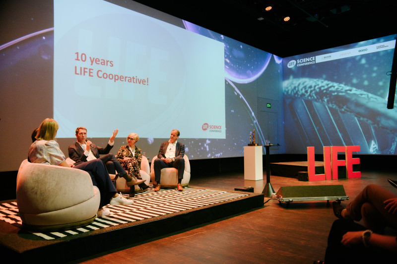 Derde editie LIFE Science Conference groot succes Een volledig uitverkochte zaal, inspirerende keynotes, het tienjarig jubileum van de LIFE Cooperative en een spannende ontknoping van de Innovation Award met winnaar Neolook. Dit bleek het ideale recept voor een bruisende editie van de LIFE Science Conference op dinsdag 24 september. Dit jaar stond de conferentie in het teken van het thema ‘Data Science for Life Science’, waarmee de nadruk werd gelegd op de integratie van data en artificial intelligence in de life sciences en health sector. Meer dan 200 ondernemers, onderzoekers en beleidsmakers kwamen samen om kennis uit te wisselen en te netwerken over de toekomst en ambities van de sector. De conferentie in Forum Groningen werd geopend door de dagvoorzitter Renée van der Sluis, waarna het officiële startschot van de conferentie werd gegeven door Carine Bloemhoff, wethouder van de gemeente Groningen, en Peter Ketelaar, directeur van de LIFE Cooperative. "Voor het derde jaar op rij organiseren we de conferentie op de vierde dinsdag van september. Het begint al een echte traditie te worden en ik ben trots dat we onze innovatieve coöperatie, in de life sciences en health, vandaag weer mogen presenteren, ons tienjarig bestaan mogen vieren en daarop na afloop te kunnen proosten. Ik roep iedereen op om met elkaar te blijven netwerken en te blijven zoeken naar nieuwe samenwerkingen en ideeën”, aldus Peter Ketelaar.AI maakt zorg persoonsgerichter Wiro Niessen, Captain of Science van het Topteam Life Sciences & Health en gespecialiseerd in de toepassing van kunstmatige intelligentie (AI) in de geneeskunde, gaf een boeiende eerste keynote. Hij voorziet een belangrijke rol voor het creëren van een data-gedreven infrastructuur in de zorg. Met behulp van de juiste data kan er preciezer en persoonsgerichter gewerkt worden. Na een korte pauze keerde het publiek terug voor de tweede keynote, verzorgd door arts, bestuurder en hoogleraar Geneeskunde Marcel Levi. In zijn keynote besprak hij de bredere maatschappelijke implicaties van AI en data science en de rol hiervan binnen de gezondheidszorg, bedrijfsleven en wetenschap. Marcel Levi benadrukte dat er veel potentie is voor het gebruik van data en AI in de gezondheidszorg, maar dat de inzet van mensen onmisbaar blijft en niet te vervangen is door computers.Viering van innovatie en samenwerking Een hoogtepunt van de middag was de viering van het 10-jarig bestaan van de LIFE Cooperative. Deze mijlpaal werd gevierd met een interactief panelgesprek met een aantal leden van de LIFE Cooperative, zoals Symeres en Ardena, die hun wortels hebben in de regio, maar wereldwijde impact maken. In het panelgesprek kwamen de ambities naar voren voor de toekomst, en werd ook stilgestaan bij de afgelopen tien jaar. Dit was ook het moment waarop twee gewaardeerde bestuursleden van de LIFE Cooperative, Ton Vries en Johannes Wolters, afscheid namen. Hun jarenlange belangeloze inzet en leiderschap hebben een belangrijke rol gespeeld in de ontwikkeling van de life sciences sector in Noord-Nederland.